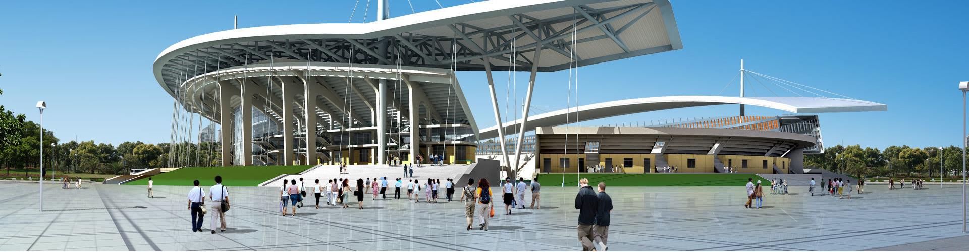 广场的结构为开放式的,分为静、动两大区以动区为中心分别形成了两条主要的轴线。