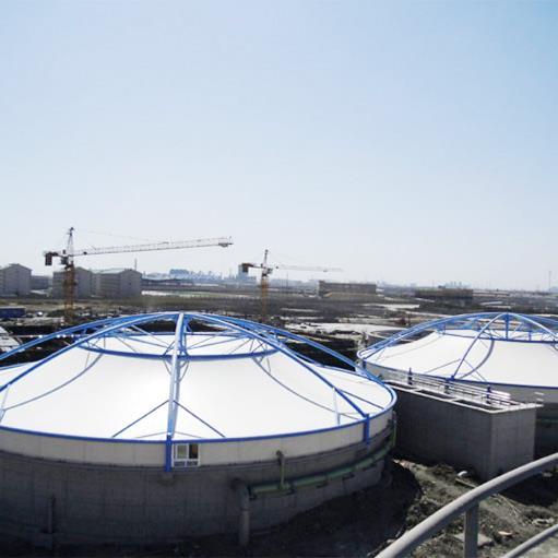 前几年在污水处理厂中应了一种叫作随动式污水池免费看片黄色网站,其是一种污水池加盖膜密封罩,该密封罩包含管道支架及转动密封体;管道支架包含格构式立柱及横梁,抽气管道及电缆可以通过管道支架连接至转动密封体;转动密封体包含外钢环、内钢环、连接钢索、密封膜;外钢环下部设置有行走轮(含主动轮、从动轮)减速机,通过减速机及行走轮可以驱动整个密封罩随着刮泥机桥架同步运转;钢外环内支撑有垂直面罩,观察窗间隔设置在垂直面罩上,通过观察窗可观察污水池内污水的处理情况;不锈钢电缆均匀布置在内外钢环之间,圆度外钢圈的刚度可通过电缆调节;钢缆上侧覆盖污水池专项膜材料。